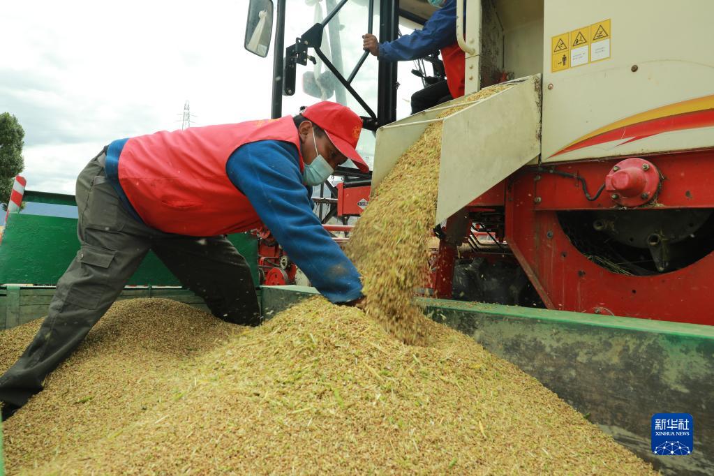 目前,西藏各地進(jìn)入秋收時(shí)節(jié)。西藏拉薩市墨竹工卡縣農(nóng)民在積極防疫的同時(shí),抓緊收割青稞,確保顆粒歸倉(cāng)。