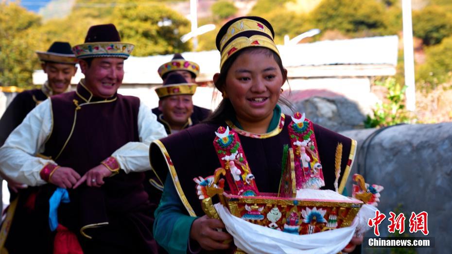 11月24日恰逢藏歷十月初一,西藏林芝迎來2023年工布新年,這是西藏最早的新年。工布新年以其悠久的歷史、鮮明的特色、豐富的內涵,于2006年被列入第一批西藏自治區(qū)非物質文化遺產(chǎn)保護名錄。圖為村民身著節(jié)日盛裝手捧“切瑪”拜年。 土旦曲扎 攝