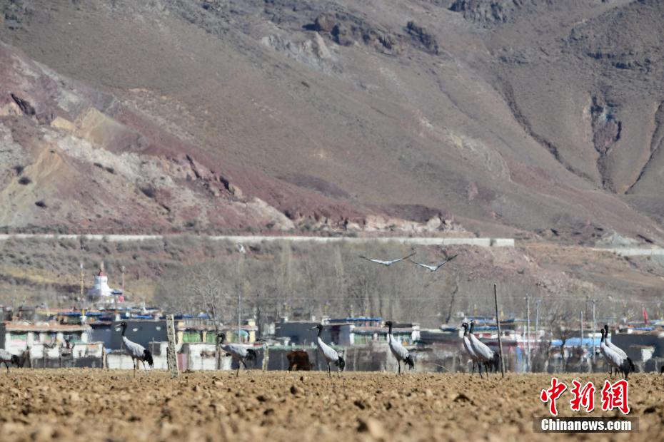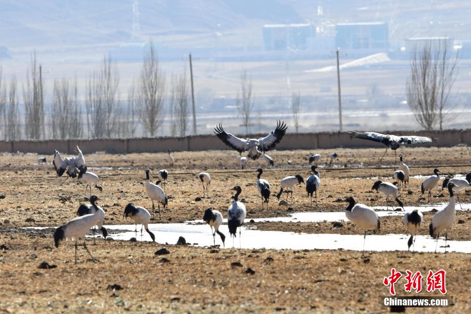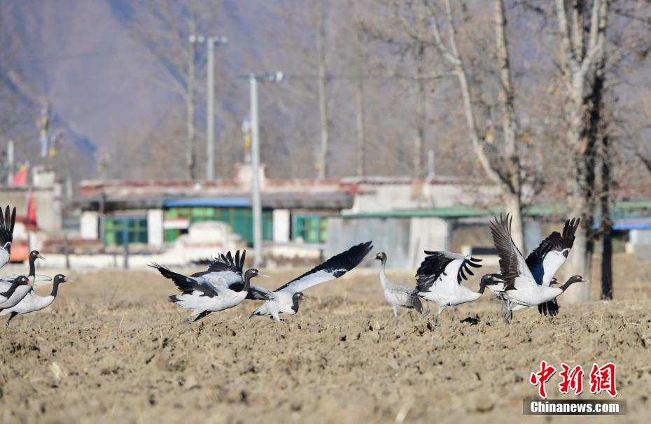 每年的10月底,成群的黑頸鶴飛到西藏拉薩市林周縣越冬,在拉薩市林周縣周邊的湖泊濕地度過(guò)5個(gè)月的“閑云野鶴”生活,次年三四月份再飛向藏北草原繁殖。黑頸鶴是世界上唯一一種高原鶴類。具有足長(zhǎng)、喙長(zhǎng)、頸長(zhǎng)的典型涉禽類特征,適合在沼澤地里行走。黑頸鶴的頸、尾為黑色,體羽為灰白色。黑頸鶴是國(guó)家一級(jí)保護(hù)動(dòng)物。目前,每年到林周縣越冬的黑頸鶴已達(dá)2000只左右。圖為黑頸鶴在林周境內(nèi)的農(nóng)田里覓食、嬉戲。 貢嘎來(lái)松 攝