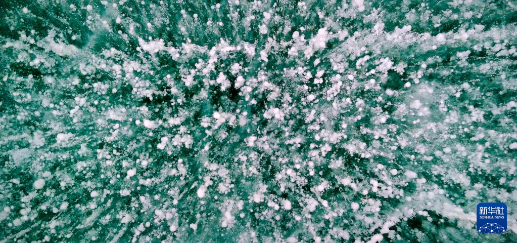 這是瓊穆崗嘎冰川冰湖湖面的“氣泡冰”(手機照片,2月20日攝)。新華社記者 沈虹冰 攝