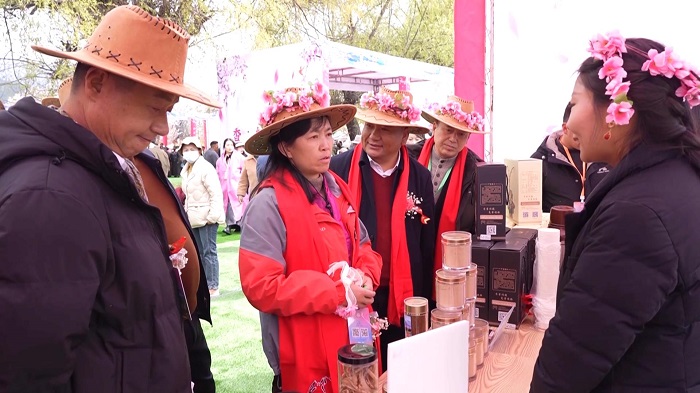 穿梭在桃花林中的拉林鐵路高原復(fù)興號。