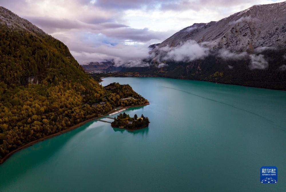 這是在林芝工布江達(dá)縣拍攝的巴松錯(cuò)(無人機(jī)照片,10月28日攝)。新華社記者 姜帆 攝