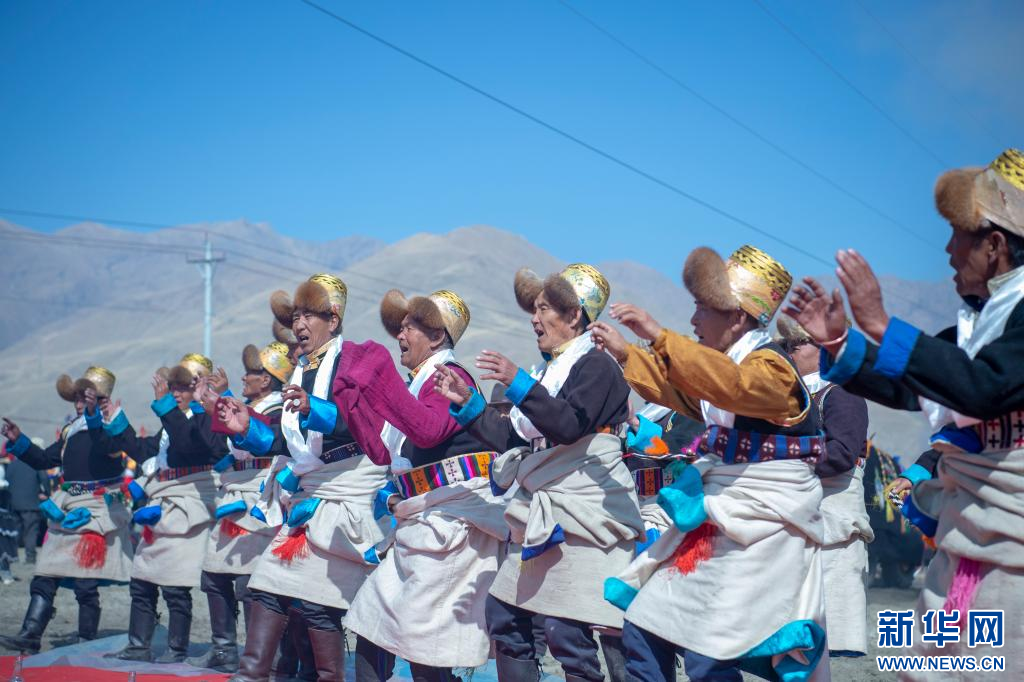 3月16日,克松社區(qū)居民格桑多吉在領(lǐng)唱古老的《春耕之歌》。新華網(wǎng) 旦增努布 攝