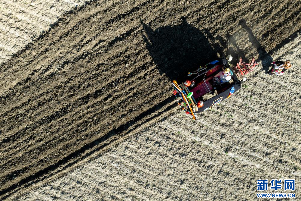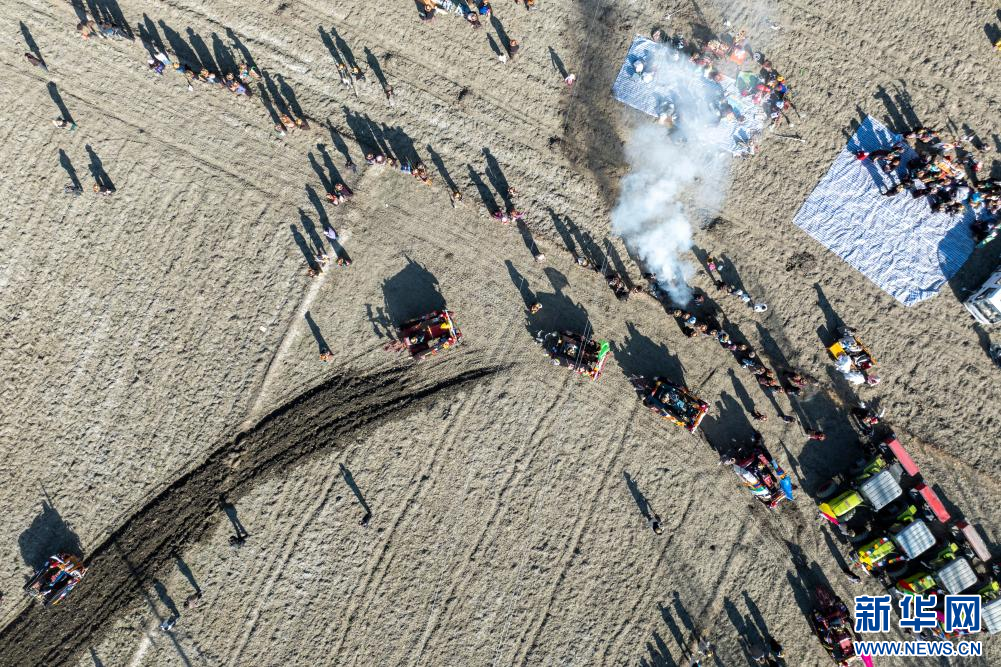 3月16日,克松社區(qū)居民在進(jìn)行春耕儀式(無(wú)人機(jī)照片)。新華網(wǎng) 旦增努布 攝