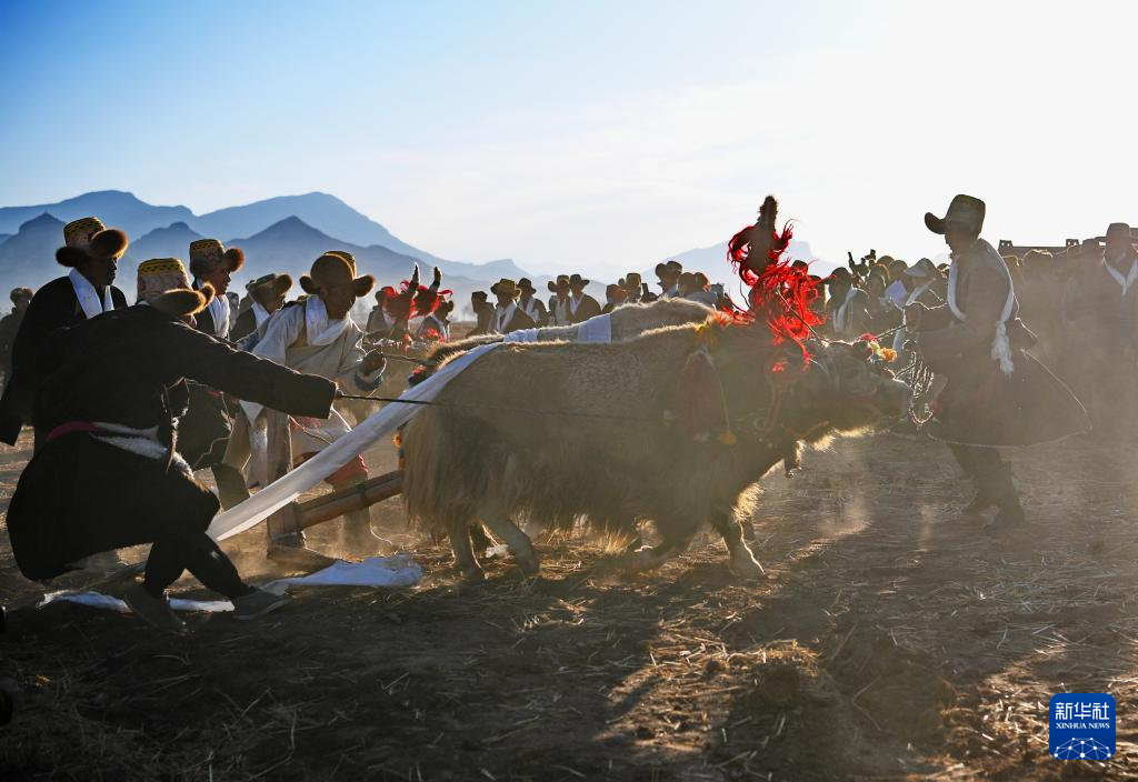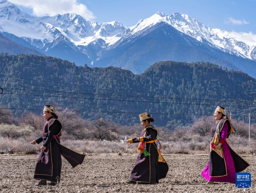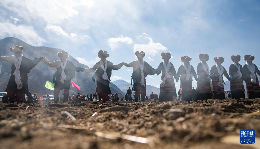 3月16日,在西藏拉薩市林周縣春堆鄉(xiāng)的春耕儀式現(xiàn)場(chǎng),當(dāng)?shù)厝罕姳硌莶貞颉P氯A社記者 張汝鋒 攝