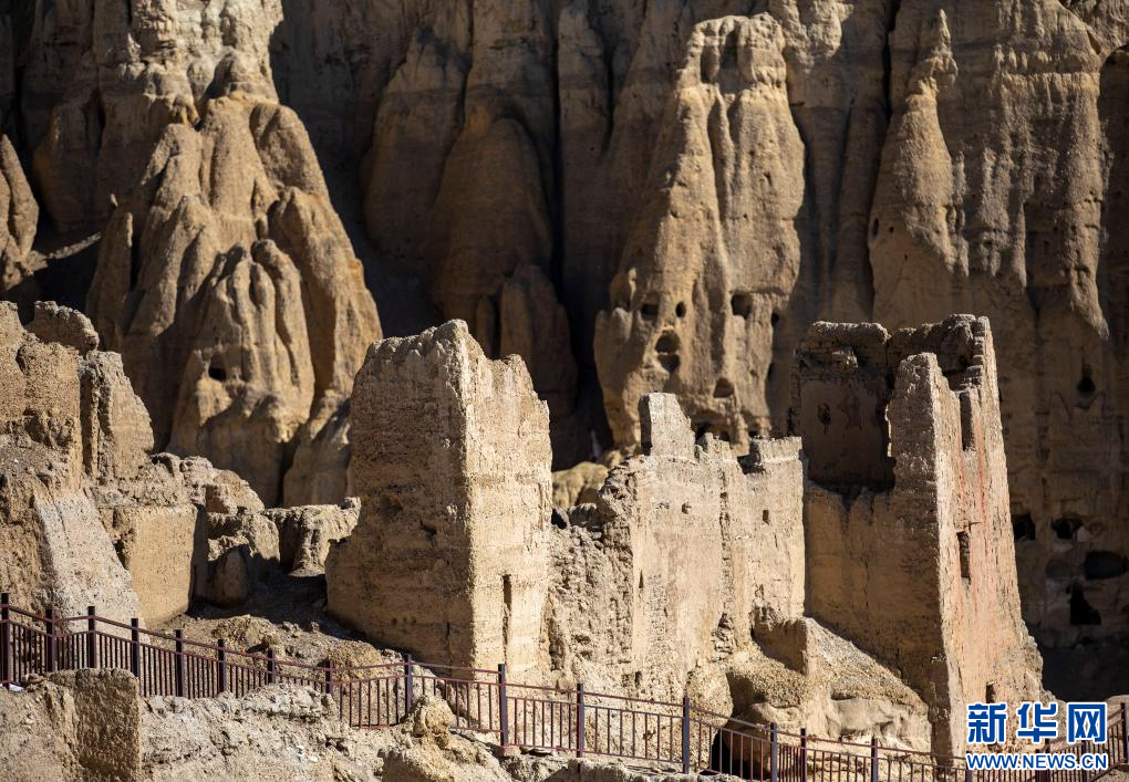 達(dá)巴遺址位于西藏阿里地區(qū)札達(dá)縣境內(nèi),其主要建筑分布在兩座山脊之上,整個(gè)遺址共有洞穴200余處,且有獨(dú)立的碉樓、寺廟建筑遺跡、居民窯洞等建筑,在白雪的映襯下,顯得格外雄渾而神秘。