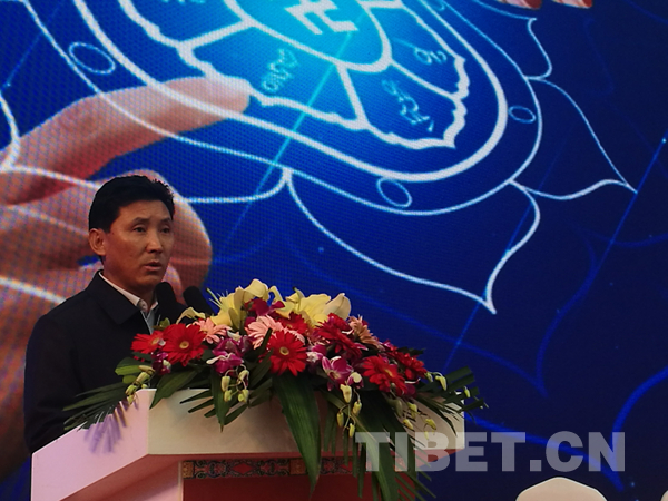 圖為拉薩市市長(zhǎng)果果在招商推介會(huì)上講話