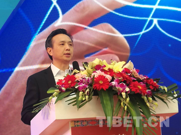 拉薩市市長(zhǎng)果果在展會(huì)上代表拉薩市委、市政府講話。他說(shuō),希望把一個(gè)區(qū)位獨(dú)特、資源豐富、潛力巨大的新拉薩介紹給各位,把拉薩大力發(fā)展以“凈水、凈土、凈空、凈心”四凈為核心的凈土健康產(chǎn)品推介給各位。