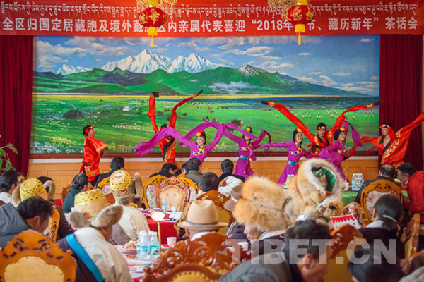 “扎西德勒!扎西德勒!”茶話會(huì)上,西藏歸國定居藏胞暢敘友情喜氣洋洋,并相互致以新年最美好的祝愿!