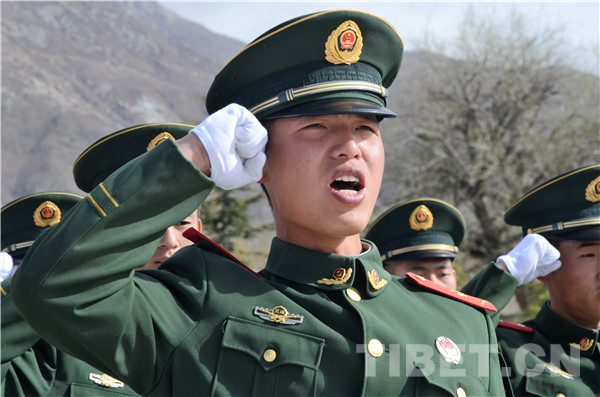 圖為駐拉薩官兵重溫忠誠衛(wèi)士誓詞。攝影:王闖