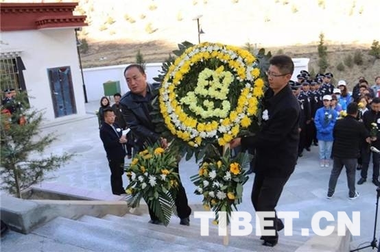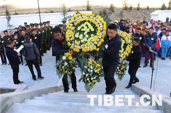 圖為西藏朗縣干部群眾為烈士默哀