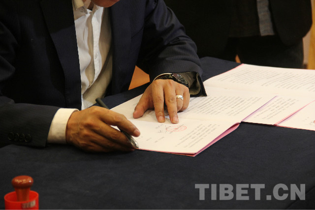 圖為涉旅企業(yè)代表簽訂2018年安全生產責任書 攝影:加措