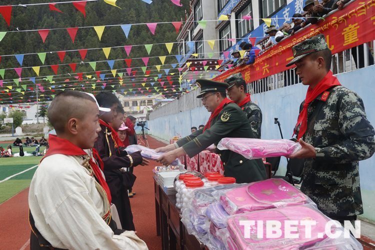 中國西藏網(wǎng)訊 在“六?一”兒童節(jié)來臨之際,武警某部交通第三支隊官兵走進(jìn)西藏自治區(qū)林芝市波密縣古鄉(xiāng)武警愛民希望小學(xué)和西藏自治區(qū)昌都市芒康縣嘎托鎮(zhèn)中心小學(xué),進(jìn)行“六?一”慰問。官兵為孩子們送來節(jié)日的關(guān)愛,帶去了書籍、書包、籃球等價值近5萬元的文體用品。