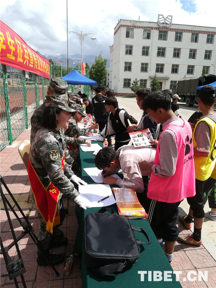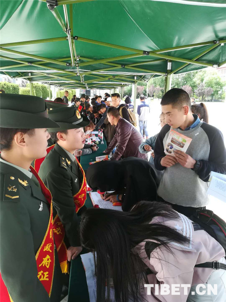 圖為2018年拉薩市大學生征兵宣傳現(xiàn)場