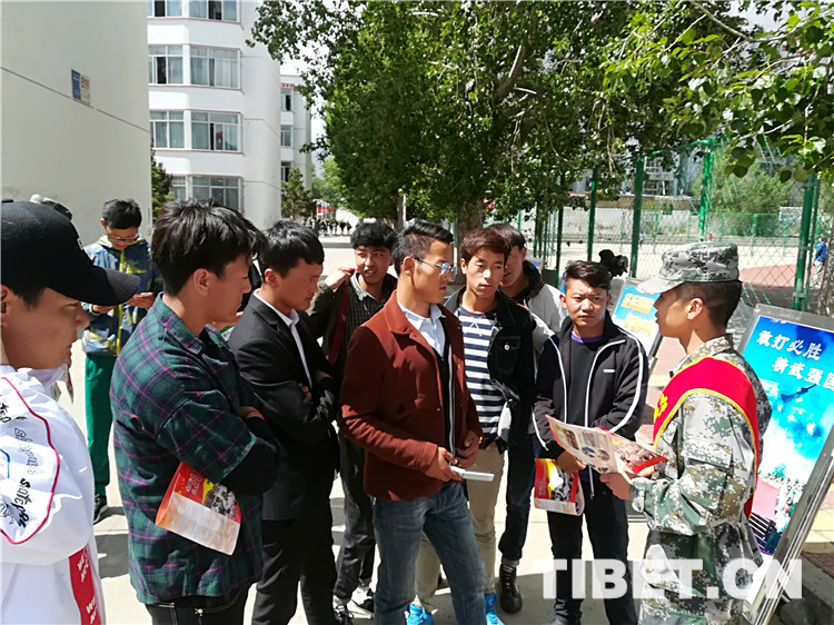 圖為拉薩警備區(qū)征兵宣傳人員對學生提出問題的進行現(xiàn)場解答。