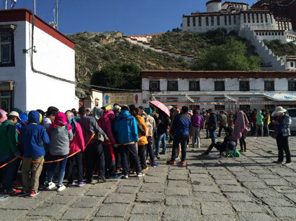 2015年布達(dá)拉宮門票預(yù)約處排起長龍 圖片來源:中國西藏新聞網(wǎng)