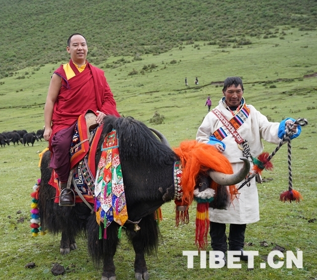 圖為十一世班禪騎著牦牛漫步牧場。攝影:王淑
