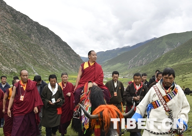 圖為在眾人簇擁下騎著牦牛的十一世班禪。攝影:王淑
