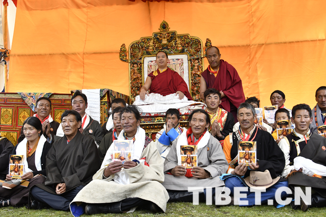 除了騎馬和騎牦牛,十一世班禪更心懷蒼生。從馬上下來后,十一世班禪為早已等候在此的信教群眾摸頂賜福。信教群眾接受了十一世班禪的摸頂賜福之后,還得到了十一世班禪的畫像、像章以及紅色金剛結。(中國西藏網 記者/王淑)