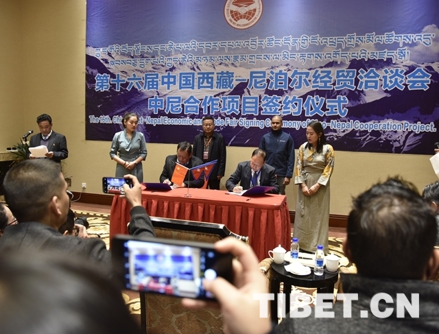 圖為第十六屆中國西藏—尼泊爾經(jīng)貿(mào)洽談會中尼合作項目簽約儀式。攝影:王媛媛