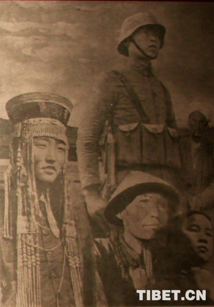 圖為劉曼卿在西藏拉薩街頭散發(fā)“五族共和的中國(guó),是世界上不可辱的力量!”宣傳畫。翻拍自“康藏軺征——國(guó)民政府代表劉曼卿史跡特展”。