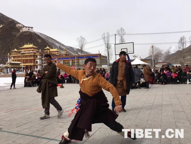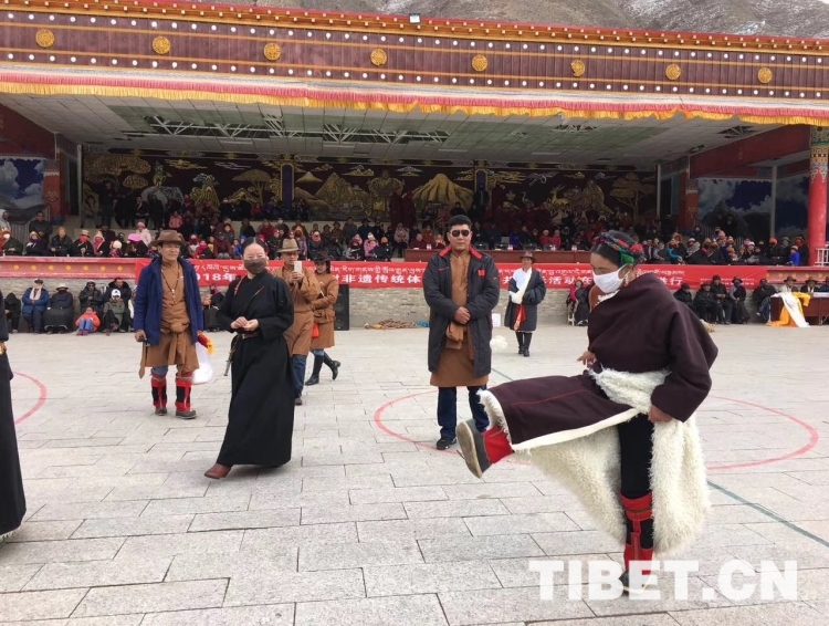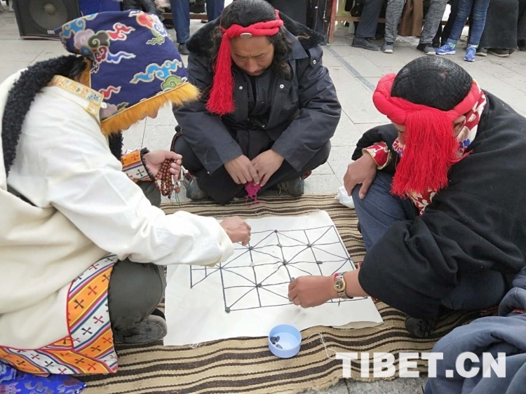 羅松戰(zhàn)斗說,現(xiàn)在鄉(xiāng)黨委政府對舞蹈隊的支持力度一年比一年大,我們到祖國的天南地北跳舞底氣足,心里熱、勁頭大。在廣場陽面有幾個男人在做投擲牛拐骨的競技游戲,幾名婦女玩羊拐骨,還有一些人在跳羊毛毽子,記者駐足觀望片刻。嚯,有的能連續(xù)跳100多下,多半?yún)⑴c者還會后腳轉(zhuǎn)身跳……笑聲、歡呼聲一陣陣傳入耳中。男子投擲牛拐骨的游戲,比較刺激,記者也是第一次見。其規(guī)則是參與者先在十米開外的地方用力將一枚牛拐骨投向石壁,待牛拐骨反彈過來,參與者就得接住,越多越好。副鄉(xiāng)長鄭叢辛告訴記者說:“每年的初一、初四,附近村社的農(nóng)牧民群眾都會來這里進行各種民間游戲比賽,如藏棋、拔河、藏牌等,一些幾近失傳的活動又恢復(fù)了生機。還要舉行一些具有現(xiàn)代風(fēng)格的時裝秀、歌詠比賽等?!?/p>