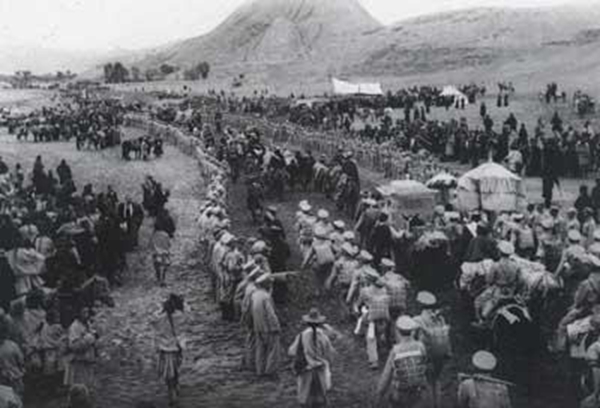 圖為十世班禪一行抵達(dá)日喀則時(shí),等候歡迎的市郊民眾達(dá)六萬(wàn)多人,許多僧俗百姓在此等了一個(gè)多月,見到離開西藏30多年的班禪喇嘛,許多信眾痛哭流涕,場(chǎng)面十分感人。李九齡 攝 圖片來(lái)源:《中國(guó)西藏(中文版)》2011年第03期。
