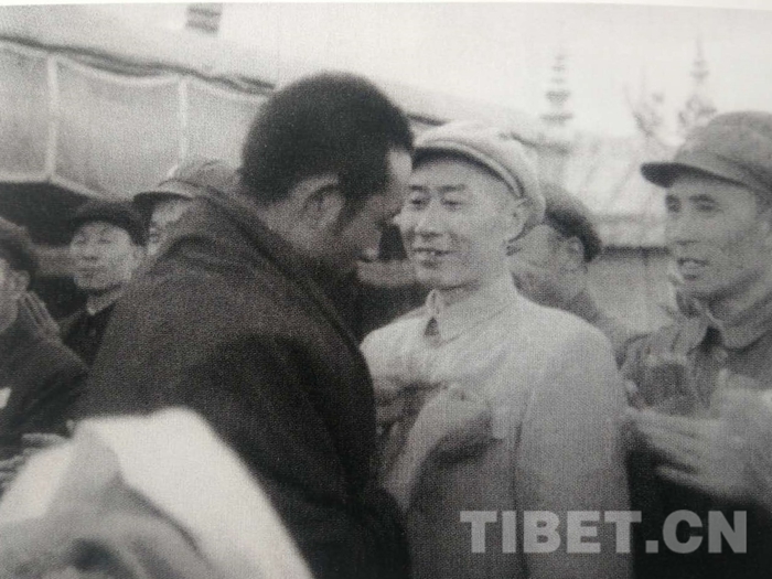 1952年4月28日,十世班禪額爾德尼?確吉堅贊及其堪布會議廳委員會全體人員從青海返回西藏,到達拉薩。張經(jīng)武和人民解放軍駐拉薩機關(guān)、部隊、西藏地方政府各級官員、西藏地方部隊,三大寺喇嘛、拉薩市僧俗群眾等兩萬多人迎接。圖為張經(jīng)武和十世班禪的合影。