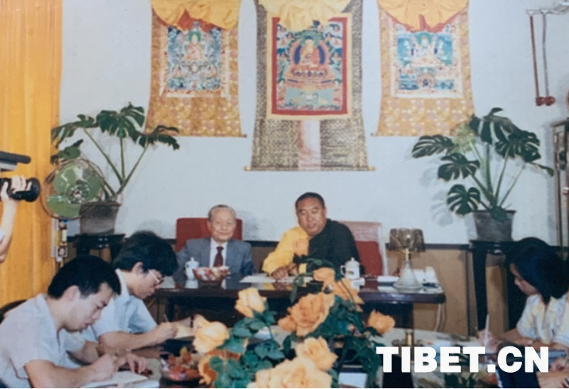 圖為1987年,十世班禪和趙樸初在中國(guó)藏語系高級(jí)佛學(xué)院成立儀式新聞發(fā)布會(huì)上接受媒體采訪。
