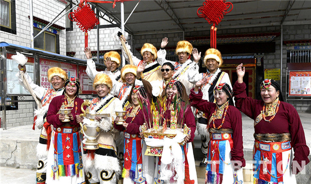 圖為阿壩林卡社區(qū)老年文藝隊在藏歷新年初一的演出圓滿結束。