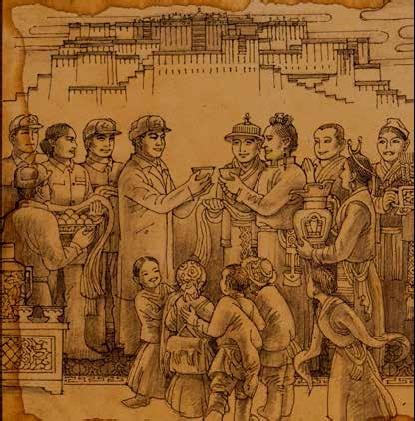 今天是春節(jié),恰好又是藏歷新年,是全家團圓的日子。但在西藏工作的同志,卻享受不到這種歡樂。大家比平時還要忙,我這個西藏軍區(qū)政治部群眾工作部的部長,比別人就更忙。從早上起床,就安排軍區(qū)首長和各部的領(lǐng)導同志,同西藏地方政府的官員,進行拜年活動,互相祝賀“洛薩,扎西德勒”(新年,吉祥如意)。各處都顯得異常熱烈和親切。