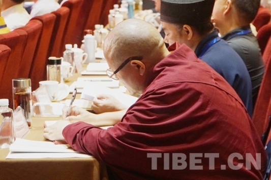 圖為達扎活佛聽專家講座時做筆記。