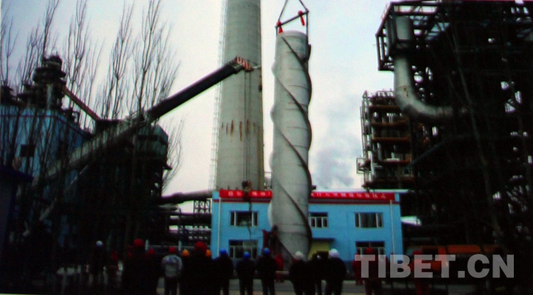 圖為2014年11月21日,催化煙氣脫硫裝置煙道吊裝現(xiàn)場。環(huán)保治理工程的建成投產(chǎn),大幅度降低了“三廢”排放,保護(hù)了青藏高原的碧水藍(lán)天