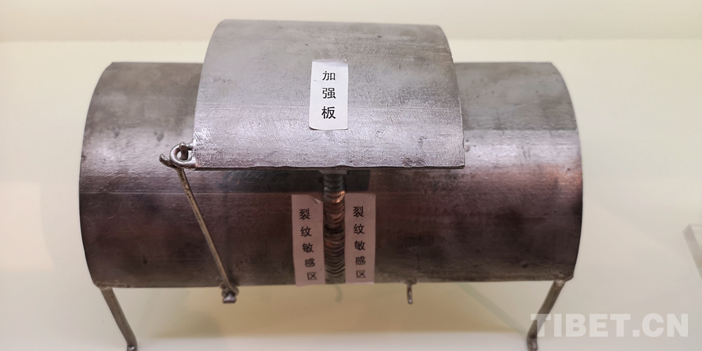 圖為楊永磊設(shè)計的管道裂紋帶壓處理工藝,利用焊接應(yīng)力將裂紋逐漸收嚴,增加加強板,防止裂紋的蔓延,省時省力省費用,且安全可靠 攝影:李元梅