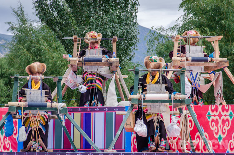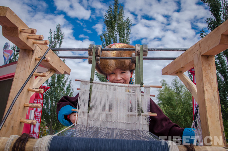 圖為開幕式上被搬上舞臺的氆氌紡織技藝 攝影:趙耀