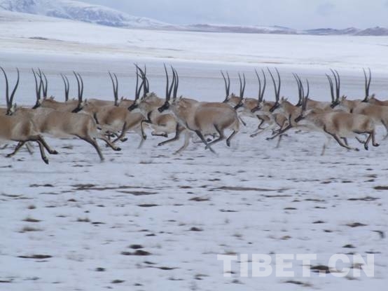 聽牧民說:天上最守紀律的是大雁,地上最守紀律的是羚羊。藏羚羊產羔后離開“產房”時的情景也很能說明這一點。據(jù)說,此時的公羚羊表現(xiàn)出盡善盡美的組織紀律性和崇高的責任感。數(shù)不清的公羚羊自動組織起來,同舟共濟,承擔起“父親”神圣職責,精心保護著母羚羊和剛出世不久的羊羔。遇到江河溪流,公羚羊首先跳下水,在下游排成屏障,保護母羚羊和羊羔過河。一旦有小羊被水沖倒,公羚羊便用身子使勁擋住它,以讓小生命爬上岸去。這種動物王國里的“父子”親情千古不變,令人感動,引人遐想。(中國西藏網(wǎng) 文、圖/唐召明)