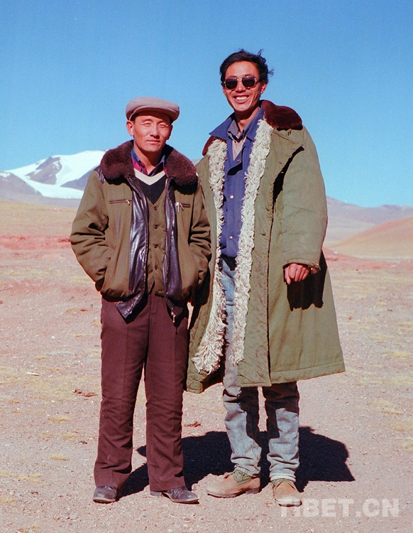 圖為唐召明(右)第二次獨(dú)闖藏北無人區(qū)時(shí),與雙湖辦事處主任索朗公布在雙湖辦事處合影留念 (唐召明1988年攝)