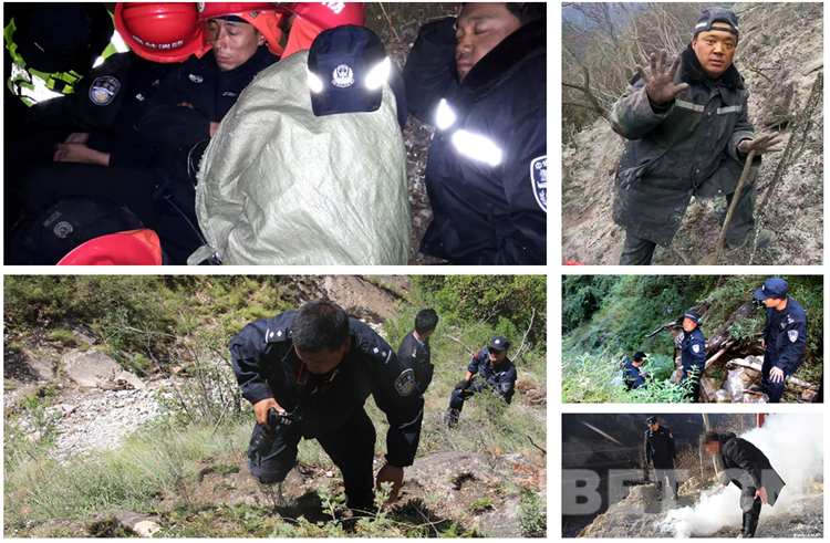圖為安康與同事們?cè)趫?zhí)行各種任務(wù)時(shí)的畫面。其中,左上圖為安康(右一)與同事野外執(zhí)行任務(wù)時(shí)就地和衣小憩;右上圖為執(zhí)行任務(wù)中的安康渾身是泥;左下圖為安康帶隊(duì)爬山開展案件調(diào)查;右下圖為安康在執(zhí)行任務(wù)時(shí)責(zé)令違法人熄滅火點(diǎn)。