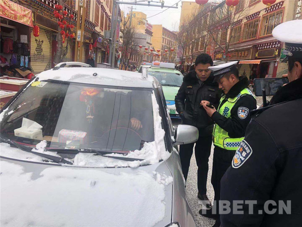圖為甘孜縣公安交警大隊對來往車輛進行檢查