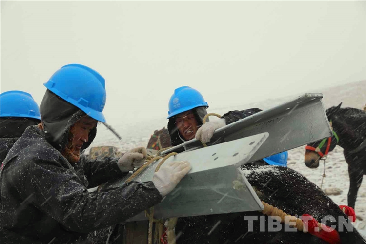 加上山脊上都是尖石頭,馬蹄子上粘了雪,走路也開始變滑。眼看著不遠(yuǎn)的運(yùn)輸距離,其他塔位半個(gè)小時(shí)能運(yùn)輸一趟,在風(fēng)雪里,又在5357米海拔高的地方,變成了一個(gè)半小時(shí)一趟。此時(shí)4R053號(hào)塔位氣溫已經(jīng)降到零下25度,風(fēng)速已經(jīng)達(dá)到8級(jí),人在風(fēng)雪里已經(jīng)站不住了,更不要說是負(fù)重的馬匹。“兄弟們咬牙堅(jiān)持住,這一趟運(yùn)輸必須完成,呆久了馬兒要受不了了,馱完這一趟,我們就往山下撤?!鄙辰鹑A在風(fēng)雪里大聲地吼道。