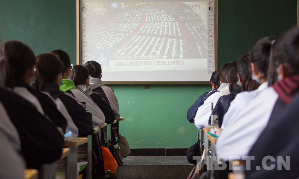 中國(guó)西藏網(wǎng)訊 5月22日,第十三屆全國(guó)人民代表大會(huì)第三次會(huì)議22日上午在人民大會(huì)堂開(kāi)幕。西藏自治區(qū)拉薩市第三高級(jí)中學(xué)的師生通過(guò)直播的方式觀看開(kāi)幕式。