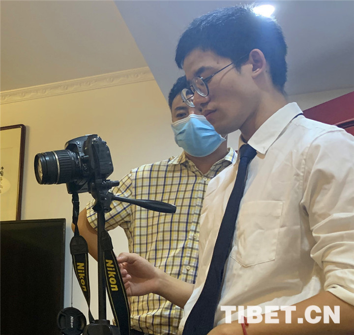 圖為中國(guó)西藏網(wǎng)記者正在準(zhǔn)備連線(xiàn)采訪(fǎng)