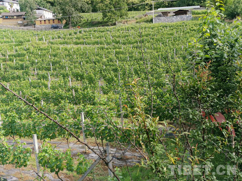 “平時做點小買賣,再加上其他收入,夠養(yǎng)活家人了?!比显谡f話間,臉上揚起幸福的笑容?!拔覀儼哑甙水€地都租給企業(yè)種葡萄了,1畝地每年還有1000多元錢的租金收入。”近年來,哈達村采取“政府+企業(yè)+農(nóng)戶”的方式,堅持走民族團結(jié)和產(chǎn)業(yè)振興相結(jié)合的路子,引進葡萄酒種植生產(chǎn)公司,助力當(dāng)?shù)亟?jīng)濟發(fā)展,促進民族團結(jié),帶領(lǐng)村民走上致富路?!斑@片就是我家的葡萄園,年齡大了,自己也不種地了?,F(xiàn)在有企業(yè)幫忙種植,地不荒還能有收入?!痹谶h(yuǎn)眺三老家的葡萄園時,三老指著葡萄園的另一邊告訴我們,那就是村里的廣場,“我經(jīng)常去廣場和大家一起跳弦子舞,很開心。”