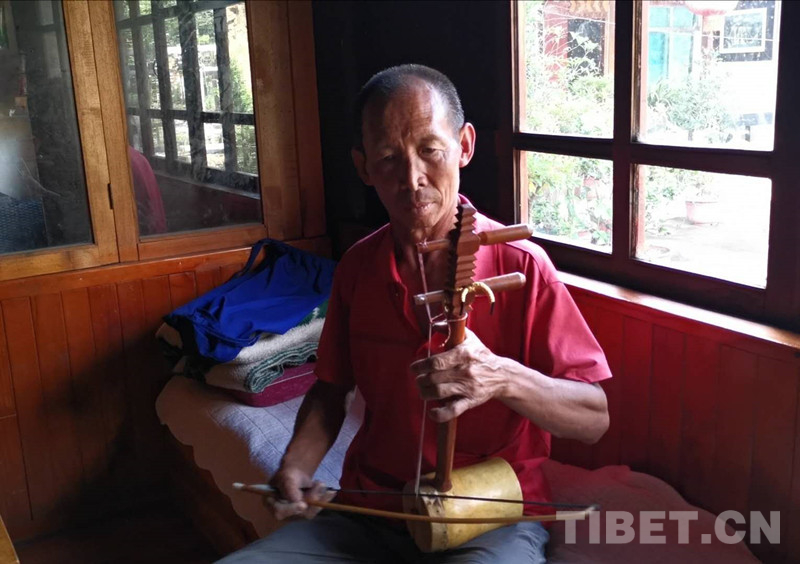 圖為李文華在拉自制的弦子 攝影:孔夏