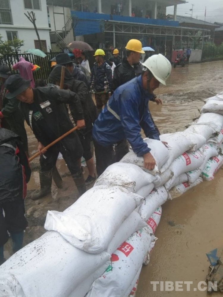 墨脫縣位于西藏自治區(qū)林芝市,近期因連續(xù)強(qiáng)降雨,造成墨脫縣背崩鄉(xiāng)背崩村引發(fā)局部洪水。由于山洪來(lái)得突然,村內(nèi)的排水道很快被沖下來(lái)的泥沙和樹(shù)木堵塞,項(xiàng)目部組織班組隊(duì)伍冒著大雨幫助當(dāng)?shù)厝罕?,共同清理排水溝,同時(shí)用麻袋裝入本來(lái)施工用的沙子,形成一道防護(hù)堡壘,有效地阻止了洪水沖入當(dāng)?shù)匾粚泳用窦抑?,將?zāi)害降到最低,保全了當(dāng)?shù)厝罕姷呢?cái)產(chǎn)安全。