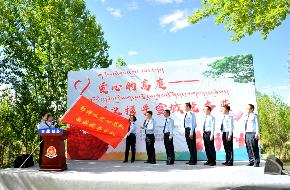 接過(guò)“郭明義愛(ài)心團(tuán)隊(duì)西藏稅務(wù)分隊(duì)”的大旗,一組青年稅務(wù)干部登臺(tái)宣誓。稅務(wù)干部次仁頓珠說(shuō),加入郭明義愛(ài)心團(tuán)隊(duì)既光榮,又是一份沉甸甸的責(zé)任,要將這份愛(ài)心傳承好、發(fā)揚(yáng)好,用心、用情投入公益事業(yè),在決戰(zhàn)脫貧攻堅(jiān)、決勝全面小康的舞臺(tái)上展示稅務(wù)藍(lán)、貢獻(xiàn)稅務(wù)力量。