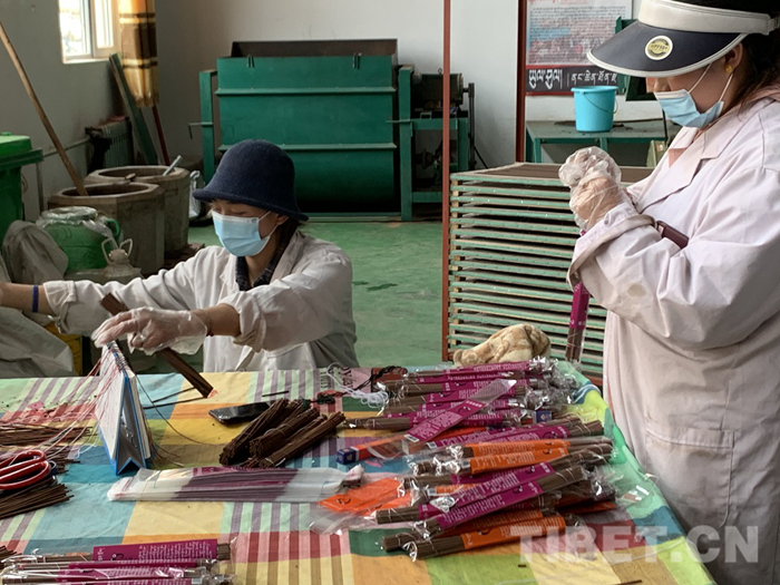 圖為產(chǎn)業(yè)園工作人員制作藏香