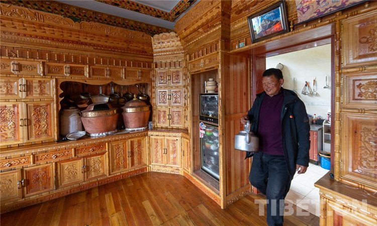 來到村民仁青家里,仁青正在煤氣灶上燒水?!捌綍r自己在工地上開裝載機,現(xiàn)在家庭年收入10多萬元?!闭勂瓞F(xiàn)在的生活仁青開興地說,以前只有過年才可能吃到的大米,現(xiàn)在已經(jīng)是每家每戶的家庭便飯。