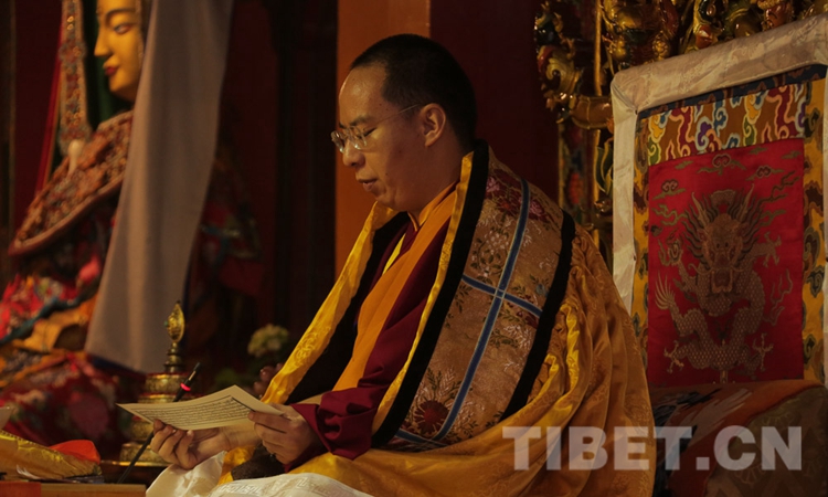 圖為十一世班禪在乳巴寺誦經(jīng)祈愿 攝影:王淑
