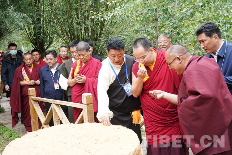 圖為十一世班禪在吞達(dá)村藏香制作園內(nèi) 攝影:王淑